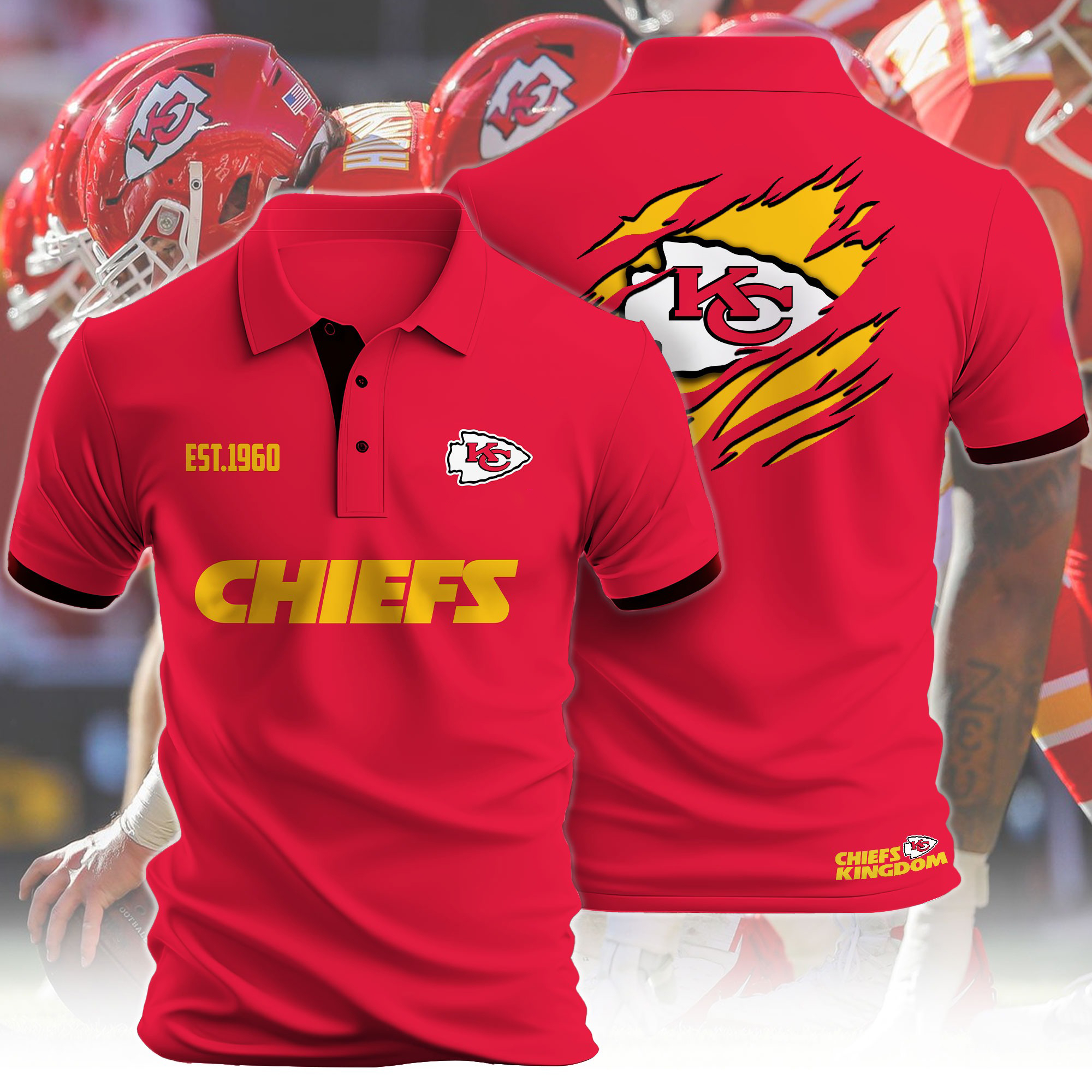 Men'S Kansas City Chiefs Print Casual Polo Shirt